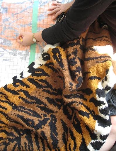 Tiger chart and knitting Posted by Ruth Marshall on November 30, 2015November 30, 2015 In this image you can see the intricate chart and textile of a life size knitted tiger – Chinese Tiger, 2011.